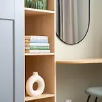 - ❓Is there a kitchen available at this apartment for guest use?Yes, this apartment is furnished with an equipped kitchenette and offers an electric kettle, an oven, and glassware as well.